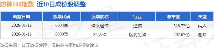 近10日内防御100(399403)指数成份股做了调整,新纳入了1只股票,剔除了1只股票。