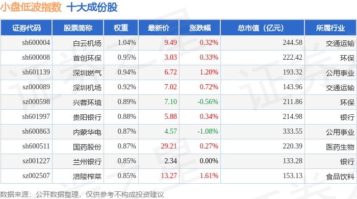 小盘低波(399408)指数十大成份股详情如下: