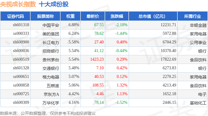 央视成长(399552)指数十大成份股详情如下: