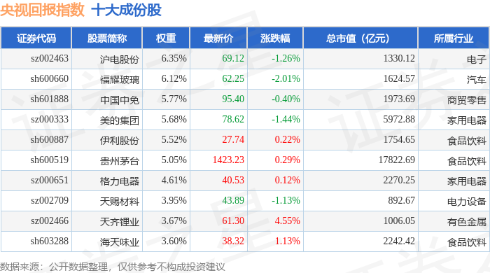 资金流向方面,央视回报(399553)指数成份股当日主力资金净流出合计20.89亿元,游资资金净流入合计6.72亿元,散户资金净流入合计14.17亿元。成份股资金流向详情见下表: