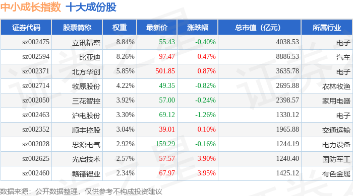 中小成长(399602)指数十大成份股详情如下: