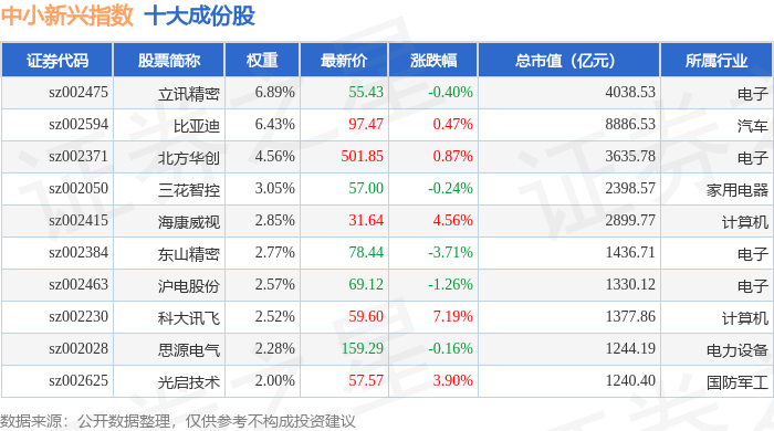 中小新兴(399642)指数十大成份股详情如下: