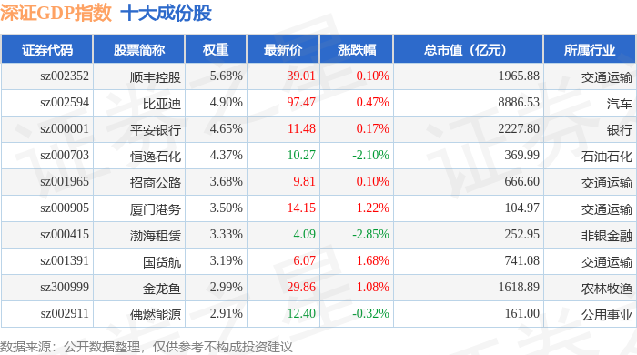 深证GDP(399648)指数十大成份股详情如下: