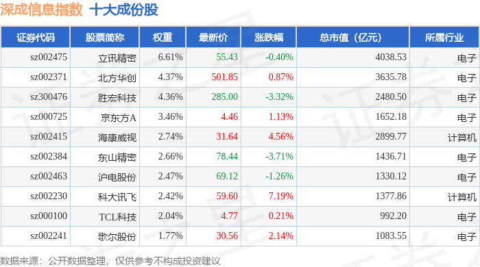 深成信息(399687)指数十大成份股详情如下:
