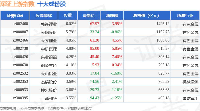 深证上游(399704)指数十大成份股详情如下: