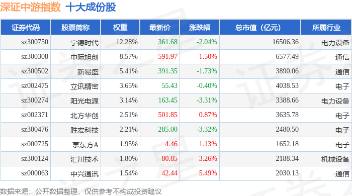 深证中游(399705)指数十大成份股详情如下: