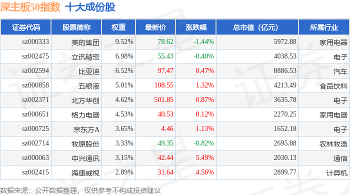 深主板50(399750)指数十大成份股详情如下: