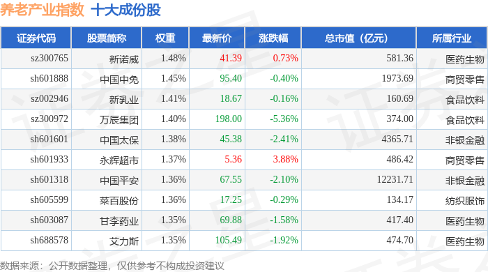 近10日内养老产业(399812)指数成份股做了调整,剔除了1只股票。