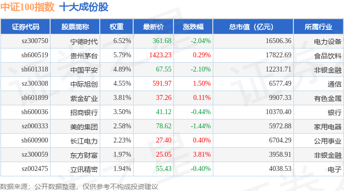 资金流向方面,中证100(399903)指数成份股当日主力资金净流出合计93.76亿元,游资资金净流入合计16.04亿元,散户资金净流入合计77.72亿元。成份股资金流向详情见下表: