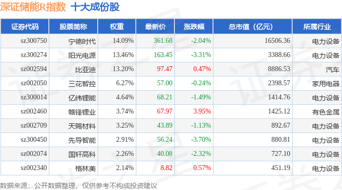 深证储能R(470036)指数十大成份股详情如下: