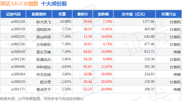 深证AIGCR(470075)指数十大成份股详情如下:
