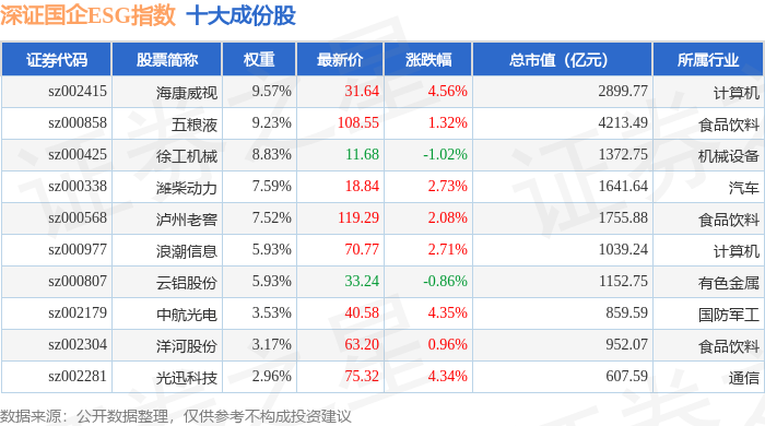 深证国企ESG(970055)指数十大成份股详情如下: