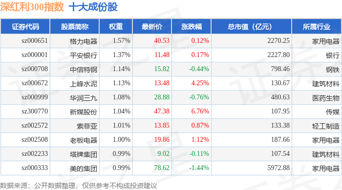 深红利300(970062)指数十大成份股详情如下:
