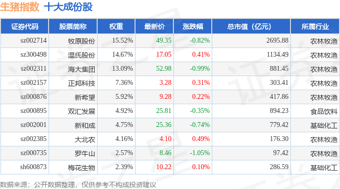 资金流向方面,生猪指数(980073)成份股当日主力资金净流出合计5.96亿元,游资资金净流入合计1.36亿元,散户资金净流入合计4.61亿元。成份股资金流向详情见下表: