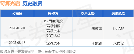 证券之星消息,根据天眼查APP于1月4日公布的信息整理,上海奇算光启信息技术有限公司Pre-A轮融资,融资额未披露,参与投资的机构包括BV百度风投,高瓴创投,高瓴资本,张江浩成。
