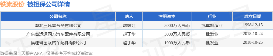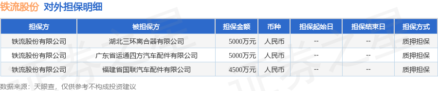铁流股份1月9日披露3笔对外担保,被担保公司3家。对外担保明细如下表: