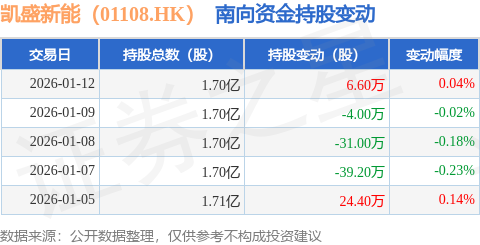 证券之星消息,1月12日南向资金增持6.6万股凯盛新能(01108.HK)。近5个交易日中,获南向资金减持的有3天,累计净减持43.2万股。近20个交易日中,获南向资金增持的有10天,累计净增持40.2万股。截至目前,南向资金持有凯盛新能(01108.HK)1.7亿股,占公司已发行普通股的67.98%。