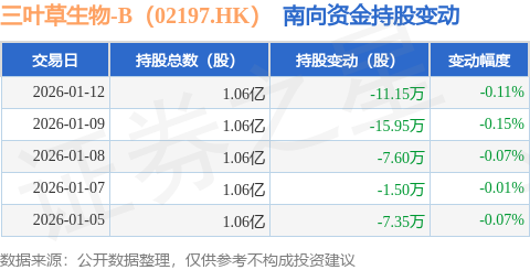证券之星消息,1月12日南向资金减持11.15万股三叶草生物-B(02197.HK)。近5个交易日中,获南向资金减持的有5天,累计净减持43.55万股。近20个交易日中,获南向资金减持的有20天,累计净减持336.75万股。截至目前,南向资金持有三叶草生物-B(02197.HK)1.06亿股,占公司已发行普通股的8.13%。