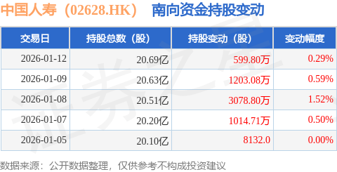 证券之星消息,1月12日南向资金增持599.8万股中国人寿(02628.HK)。近5个交易日中,获南向资金增持的有5天,累计净增持5897.2万股。近20个交易日中,获南向资金增持的有13天,累计净增持8627.53万股。截至目前,南向资金持有中国人寿(02628.HK)20.69亿股,占公司已发行普通股的27.79%。
