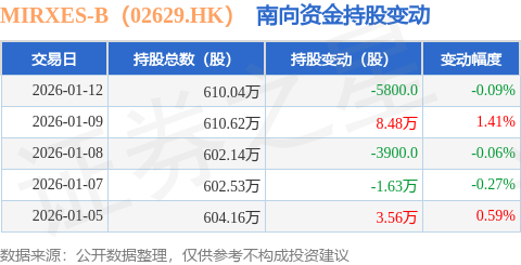 证券之星消息,1月12日南向资金减持5800.0股MIRXES-B(02629.HK)。近5个交易日中,获南向资金增持的有2天,累计净增持9.44万股。近20个交易日中,获南向资金增持的有7天,累计净增持7.86万股。截至目前,南向资金持有MIRXES-B(02629.HK)610.04万股,占公司已发行普通股的2.2%。