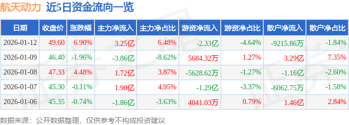 1月12日的资金流向数据方面,主力资金净流入3.25亿元,占总成交额6.48%,游资资金净流出2.33亿元,占总成交额4.64%,散户资金净流出9215.86万元,占总成交额1.84%。