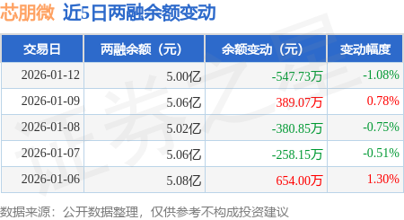证券之星消息,1月12日,芯朋微(688508)融资买入7255.1万元,融资偿还7800.45万元,融资净卖出545.35万元,融资余额5.0亿元。