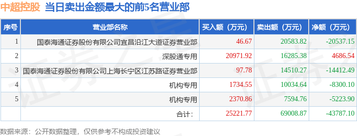 从龙虎榜公布的当日买卖数据来看,机构合计净卖出1.35亿元,北向资金合计净买入4686.54万元。消闲派、章盟主等知名游资榜上有名。(知名游资消闲派一般指国泰海通证券股份有限公司宜昌沿江大道证券营业部席位、知名游资章盟主一般指国泰海通证券股份有限公司上海长宁区江苏路证券营业部席位,根据市场资料整理,仅供参考)
