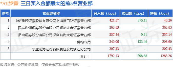 证券之星消息,沪深交易所2026年1月13日公布的交易公开信息显示,*ST步森(002569)因连续三个交易日内,涨幅偏离值累计达到12%的ST证券、*ST证券和未完成股改证券登上龙虎榜。此次是近5个交易日内第1次上榜。