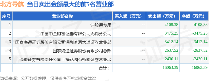 证券之星消息,沪深交易所2026年1月13日公布的交易公开信息显示,北方导航(600435)因有价格涨跌幅限制的日收盘价格跌幅偏离值达到7%的前五只证券登上龙虎榜。此次是近5个交易日内第2次上榜。