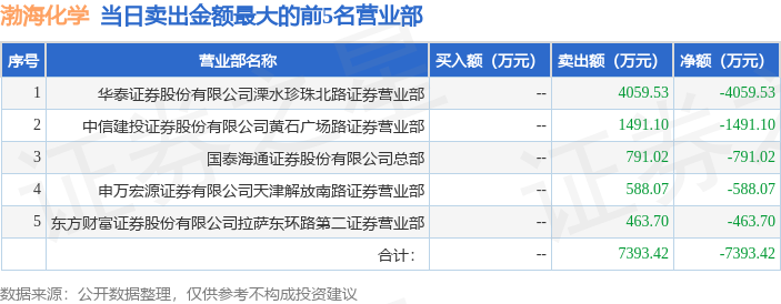证券之星消息,沪深交易所2026年1月13日公布的交易公开信息显示,渤海化学(600800)因有价格涨跌幅限制的日收盘价格涨幅偏离值达到7%的前五只证券登上龙虎榜。此次是近5个交易日内第1次上榜。