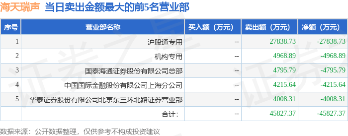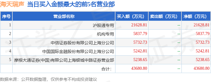 证券之星消息,沪深交易所2026年1月13日公布的交易公开信息显示,海天瑞声(688787)因有价格涨跌幅限制的连续3个交易日内收盘价格涨幅偏离值累计达到30%的证券登上龙虎榜。此次是近5个交易日内第1次上榜。