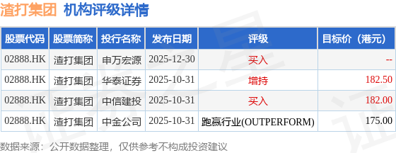 截至2026年1月13日收盘,渣打集团(02888.HK)报收于191.6港元,上涨2.84%,成交量73.65万股,成交额1.39亿港元。投行对该股的评级以买入为主,近90天内共有2家投行给出买入评级,近90天的目标均价为179.83港元。申万宏源最新一份研报给予渣打集团买入评级。