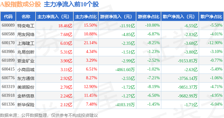 资金流向方面,A股指数(000002)成份股当日主力资金净流出合计683.45亿元,游资资金净流入合计165.63亿元,散户资金净流入合计517.82亿元。成份股资金流向详情见下表: