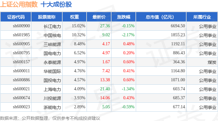 上证公用(000041)指数十大成份股详情如下: