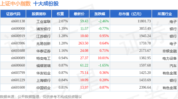 上证中小(000046)指数十大成份股详情如下: