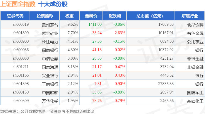 证券之星消息,1月13日,上证国企(000056)指数报收于1295.44点,涨0.22%,成交1618.01亿元,换手率0.43%。当日该指数成份股中,上涨的有53家,小商品城以5.92%的涨幅领涨,下跌的有43家,西部超导以10.02%的跌幅领跌。