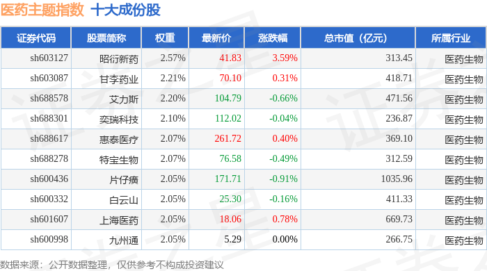 近10日内医药主题(000121)指数成份股做了调整,剔除了1只股票。