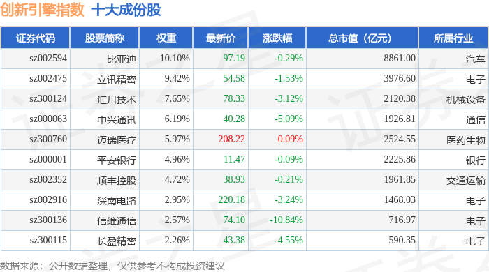 创新引擎(399050)指数十大成份股详情如下: