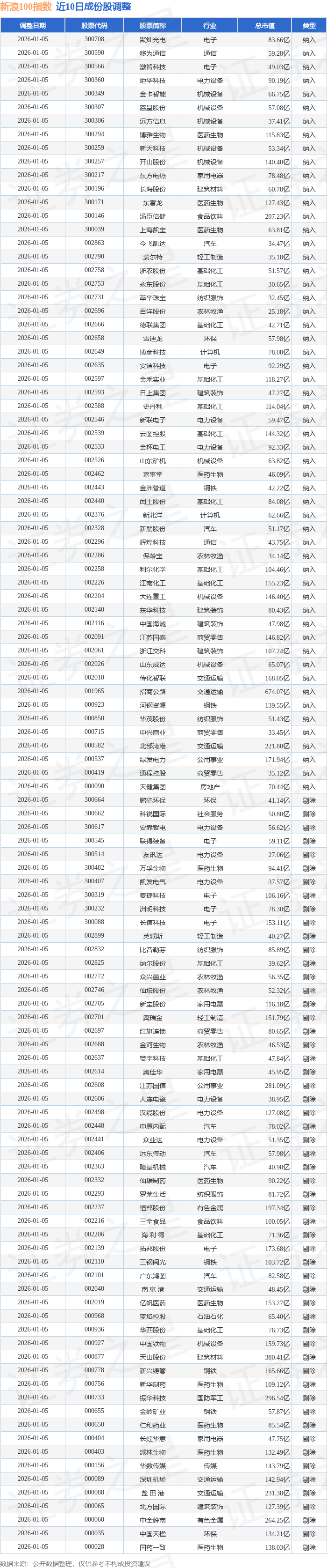 近10日内新浪100(399297)指数成份股做了调整,新纳入了56只股票,剔除了56只股票。