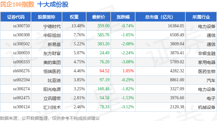 资金流向方面,民企100(399362)指数成份股当日主力资金净流出合计207.16亿元,游资资金净流入合计60.75亿元,散户资金净流入合计146.42亿元。成份股资金流向详情见下表:
