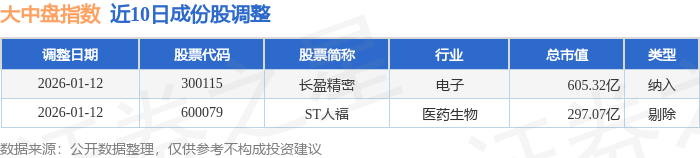 近10日内大中盘(399400)指数成份股做了调整,新纳入了1只股票,剔除了1只股票。