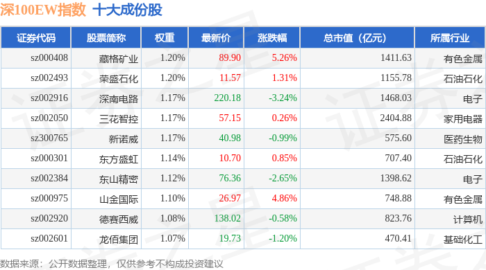 深100EW(399632)指数十大成份股详情如下: