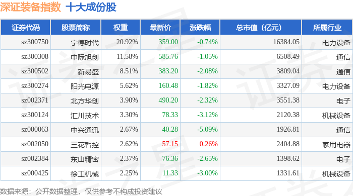 资金流向方面,深证装备(399636)指数成份股当日主力资金净流出合计226.49亿元,游资资金净流入合计52.75亿元,散户资金净流入合计173.73亿元。成份股资金流向详情见下表: