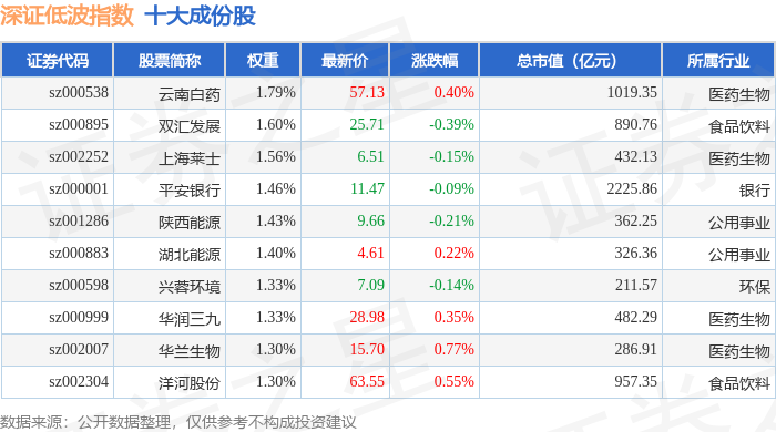 证券之星消息,1月13日,深证低波(399661)指数报收于6152.9点,跌0.61%,成交1033.41亿元,换手率1.47%。当日该指数成份股中,上涨的有33家,海亮股份以5.9%的涨幅领涨,下跌的有63家,光威复材以10.74%的跌幅领跌。