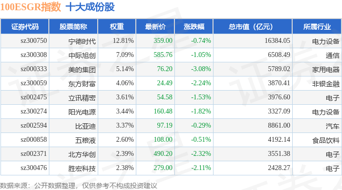 资金流向方面,100ESGR(470027)指数成份股当日主力资金净流出合计166.02亿元,游资资金净流入合计46.71亿元,散户资金净流入合计119.31亿元。成份股资金流向详情见下表: