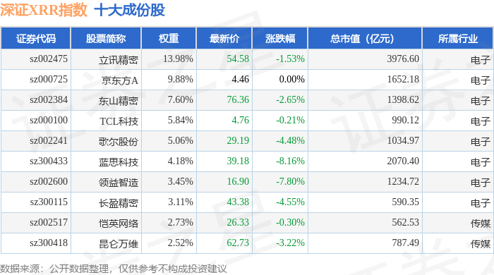深证XRR(470046)指数十大成份股详情如下: