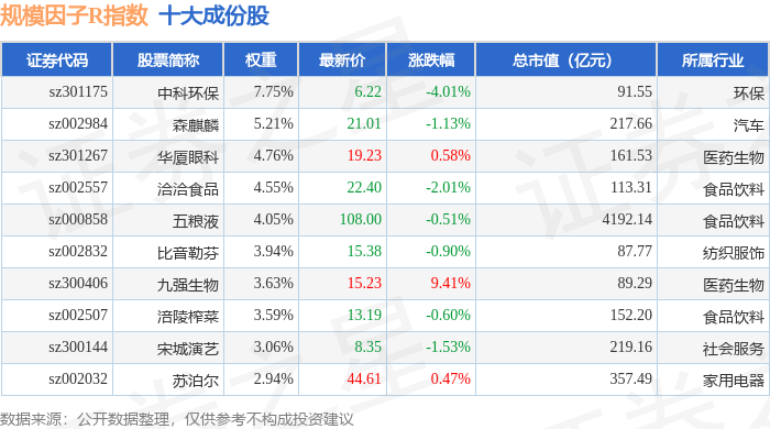 规模因子R(480055)指数十大成份股详情如下:
