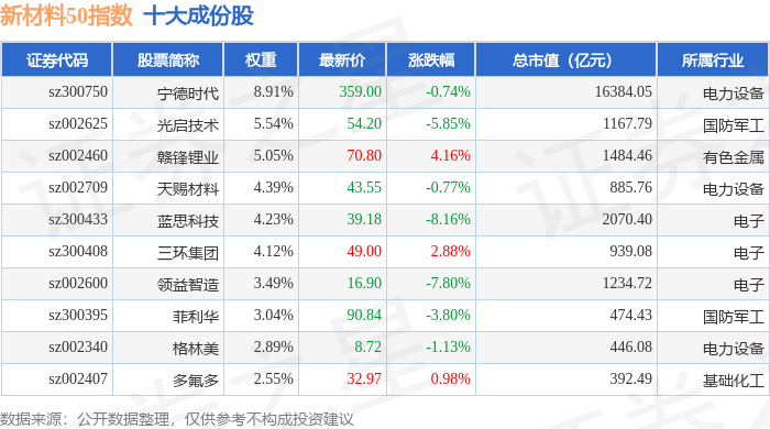 新材料50(970042)指数十大成份股详情如下: