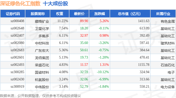 深证绿色化工(970076)指数十大成份股详情如下: