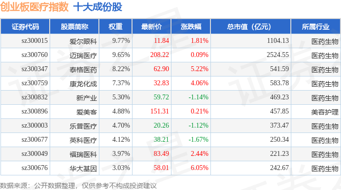 资金流向方面,创业板医疗(970082)指数成份股当日主力资金净流入合计11.99亿元,游资资金净流出合计6.19亿元,散户资金净流出合计5.8亿元。成份股资金流向详情见下表: